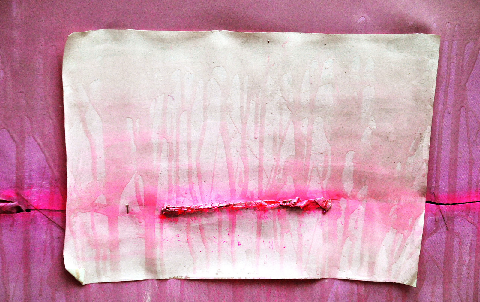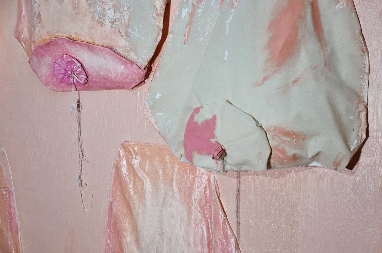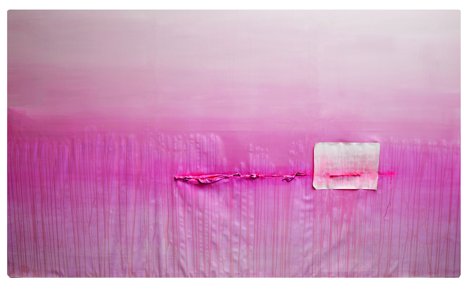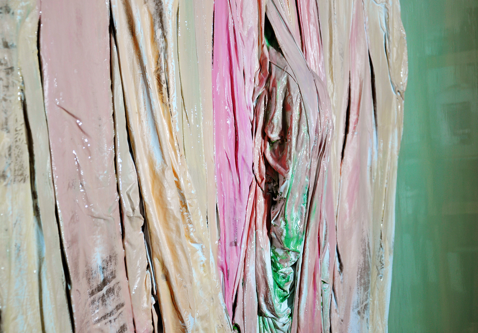 plastic works, some of which reach a size of up to 3 metres. The canvas is torn, cut up, sawn, patched, covered with fabric